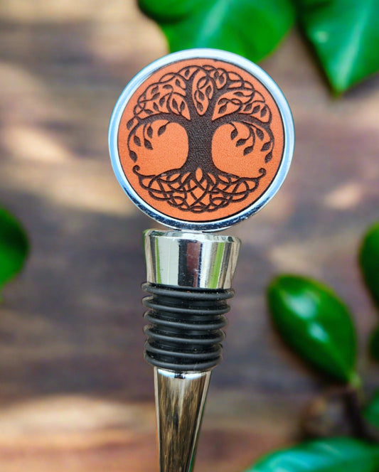 Tree Of Life Wine Bottle Stopper - Leather Bar Ware