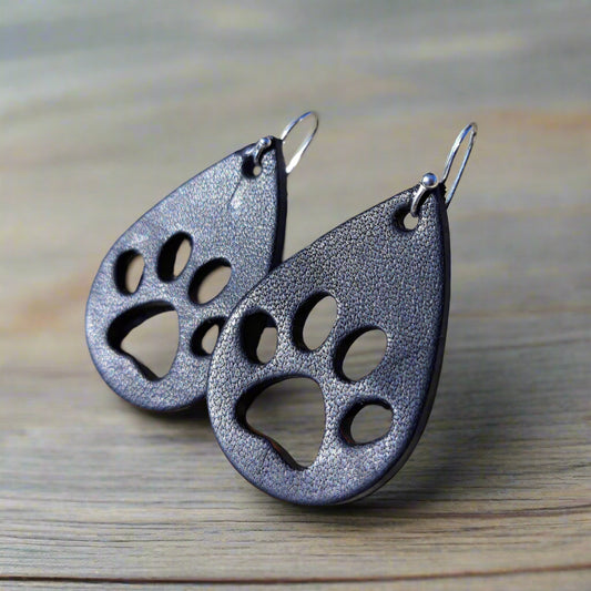 Leather Dog Paw Earrings: Handcrafted Dangle earrings, Pet Lover Gift
