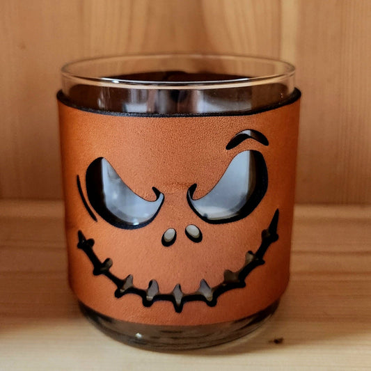Jack o lantern Leather and Glass candle holder - Halloween candle set