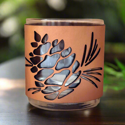 Pinecone Leather Candle Holder: Handcrafted Fall Decor with Glass