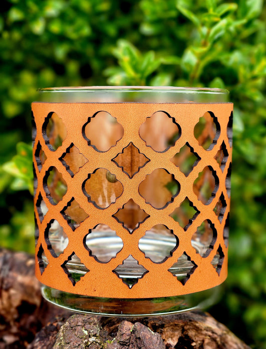 Moroccan Tile Leather Candle & Glass holder set