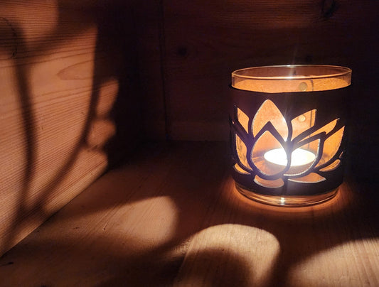 Lotus Flower Leather and Glass candle holder