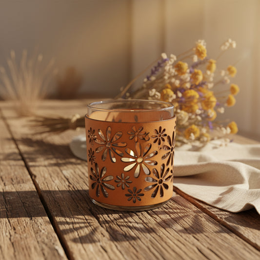 Daisy Flowers Leather wrapped candle set