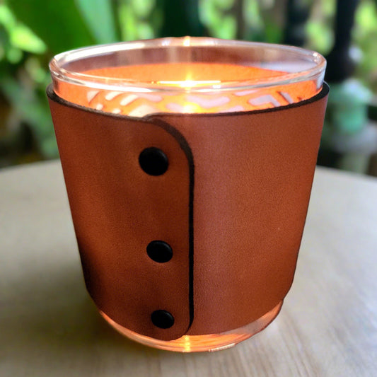 Collection: Leather Candle 3 wick Wrap/ Wrap & Candle Glass Set