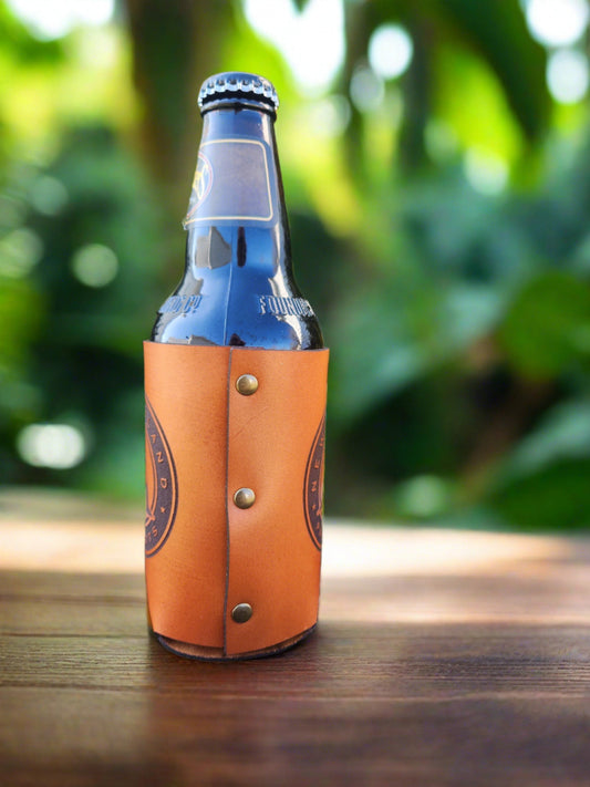 Celic Knot engraved Leather beverage cozie - beer can holder