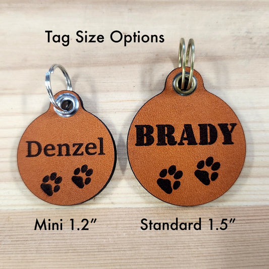 Quiet Leather Dog Id Tag- Name & 2 paws