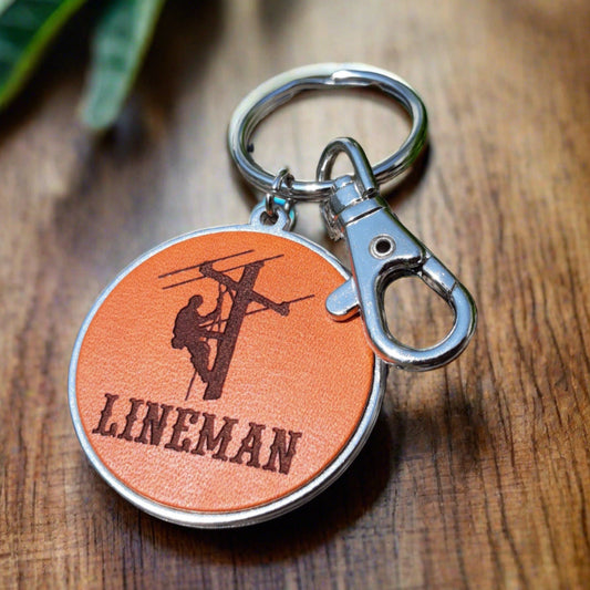 Power Lineman/ Electrical Lineman engraved Leather keychain