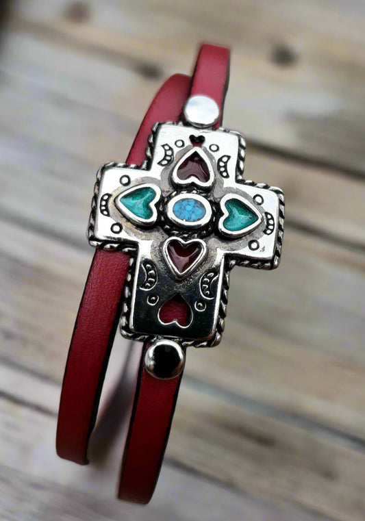 Turquoise Cross Leather Wrap Bracelet
