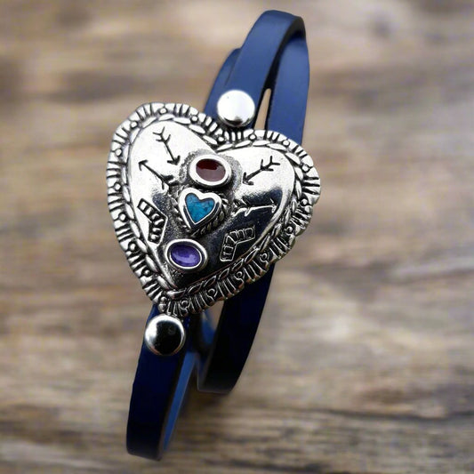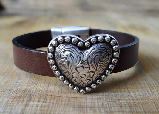 Heart Leather bracelet - Southwest bling concho bracelet