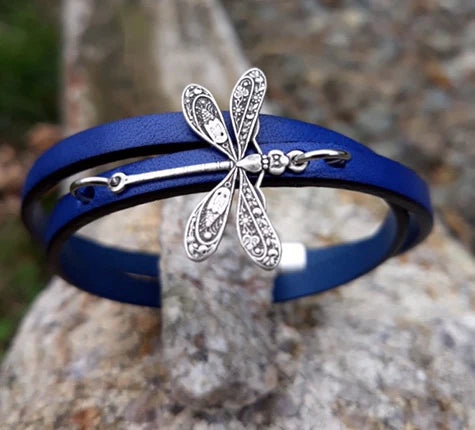 Dragonfly leather wrap bracelet