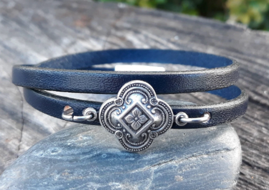 Silver Quatrefoil leather wrap bracelet