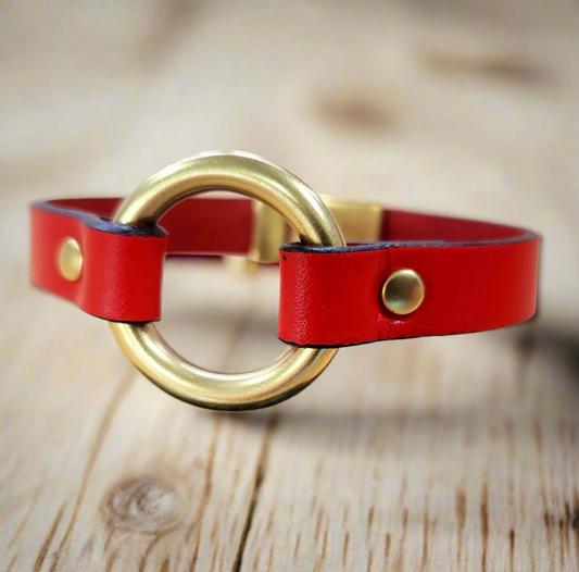 Brass Ring leather bracelet - vintage ring bracelet