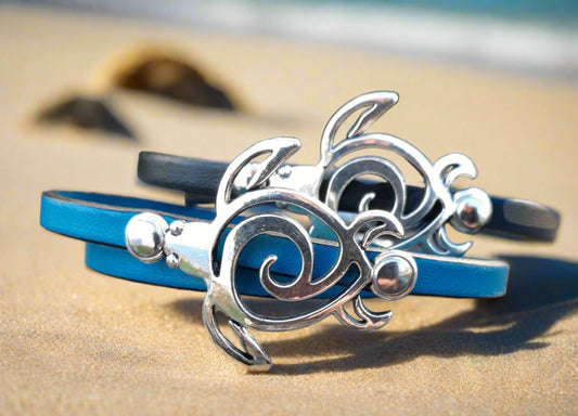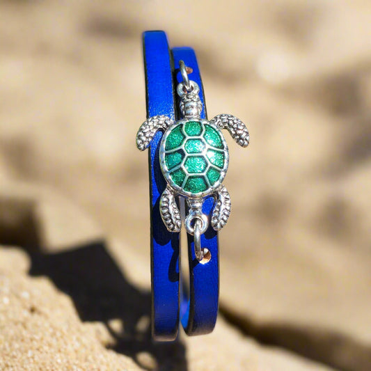 Sea Turtle leather bracelet - Large sea turtle double wrap around