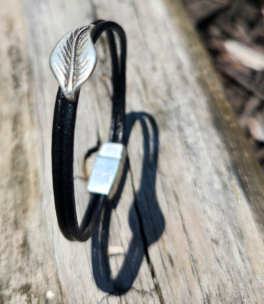 Silver Leaf Leather bracelet - Dainty leather bracelet
