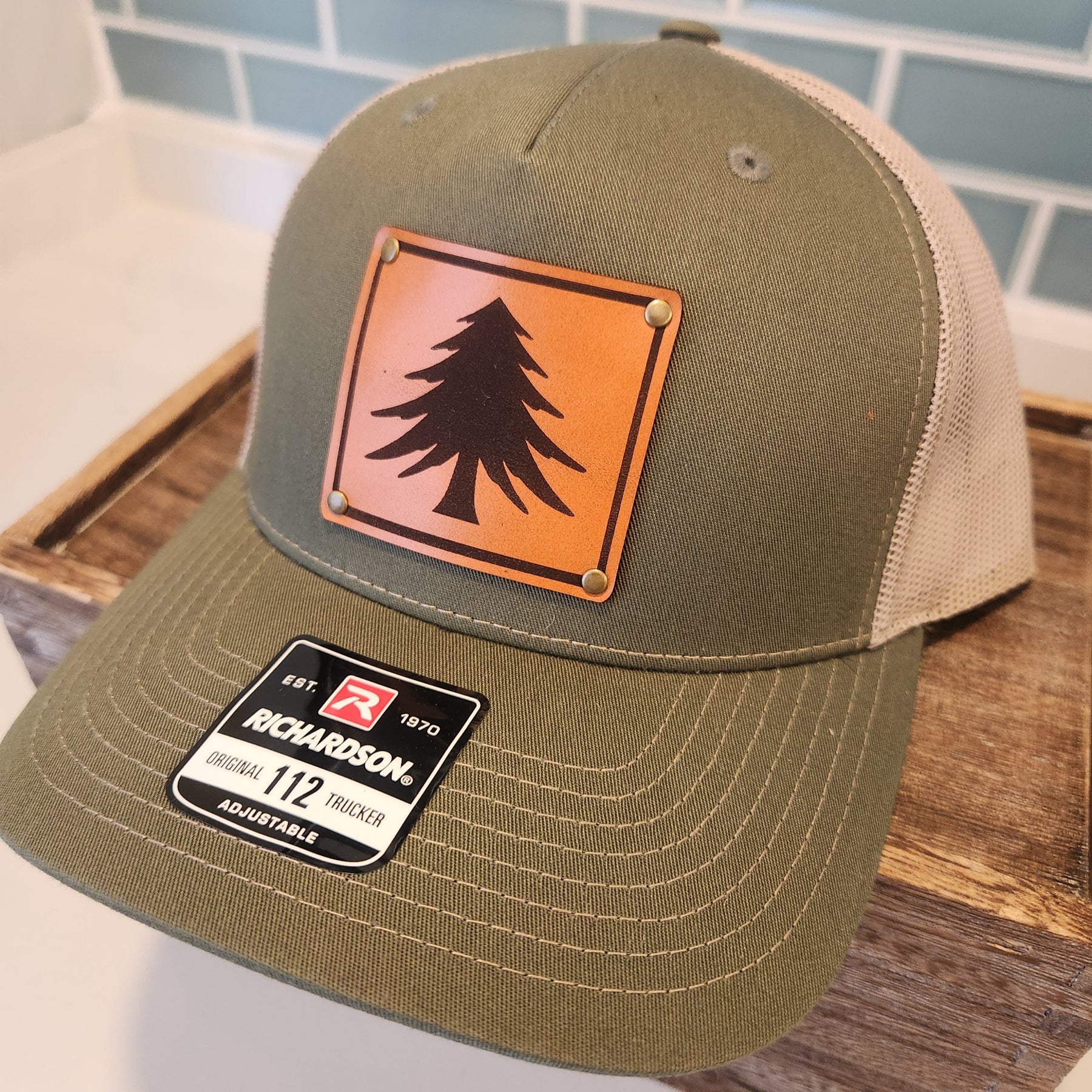 One can almost smell the pine with this stately solo Pine tree engraved design. When the mountains are calling, wear this hat on your next adventure! - design is laser-engraved to last.