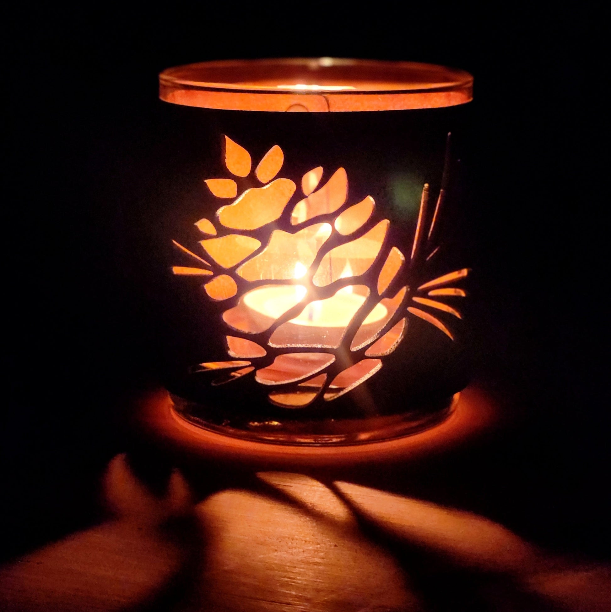 Pinecone Leather Candle Holder: Handcrafted Fall Decor with Glass