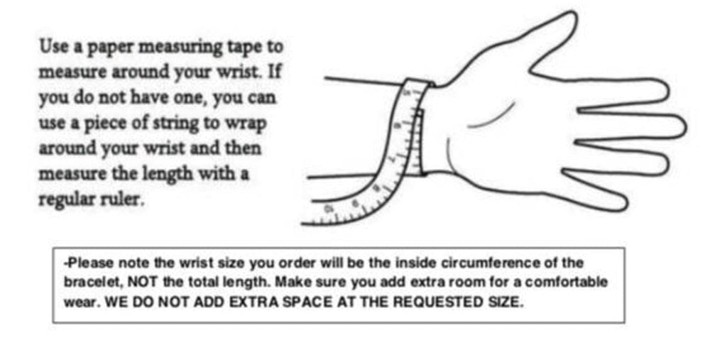 MEASURE YOUR WRIST: Our Leather bracelets are tailored to fit your specific wrist size! Be sure to select your exact measurement, not your bracelet size. Use a soft measuring tape or string to accurately measure above your wrist bone and we'll handle any necessary adjustments for the clasp and leather thickness.
