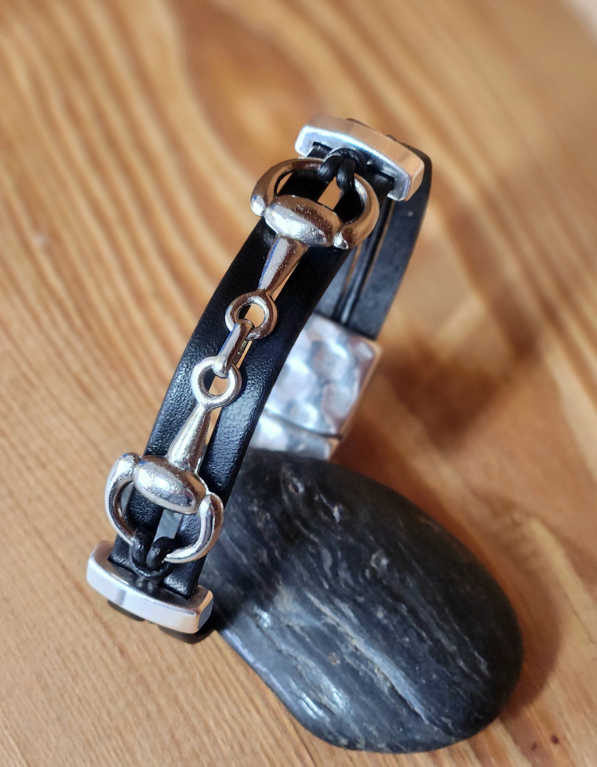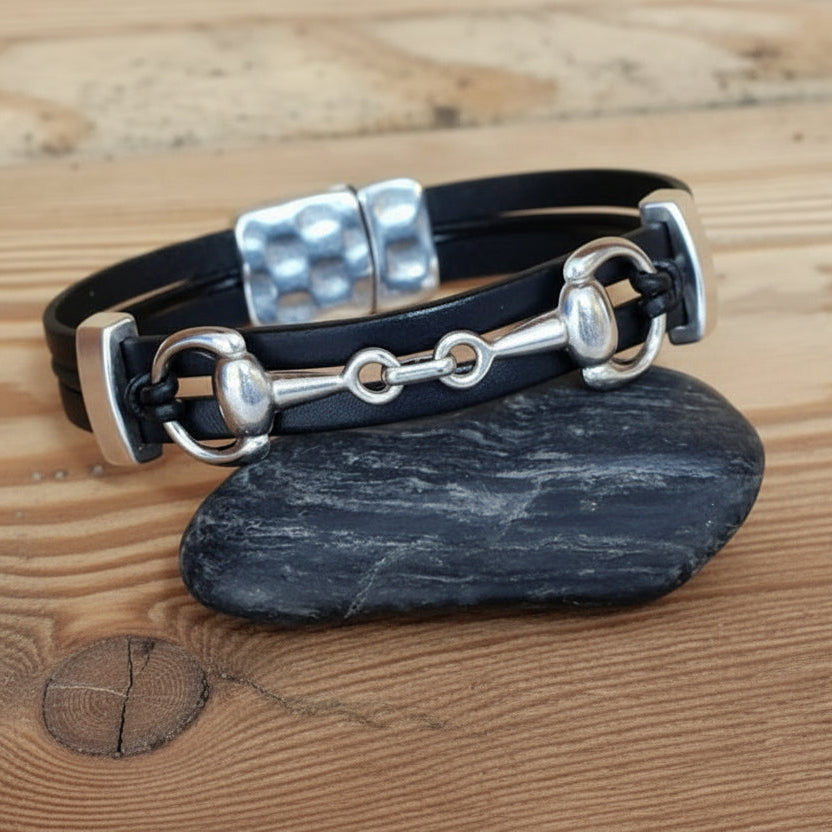 Snaffle Bit leather bracelet - Mens Equestrian leather jewelry